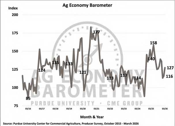Read MoreFarmer sentiment improved in March, driven by improved expectations for the future even as current financial conditions remain mixed. The Purdue University/CME Group Ag Economy Barometer rose 11 points to 127. The…