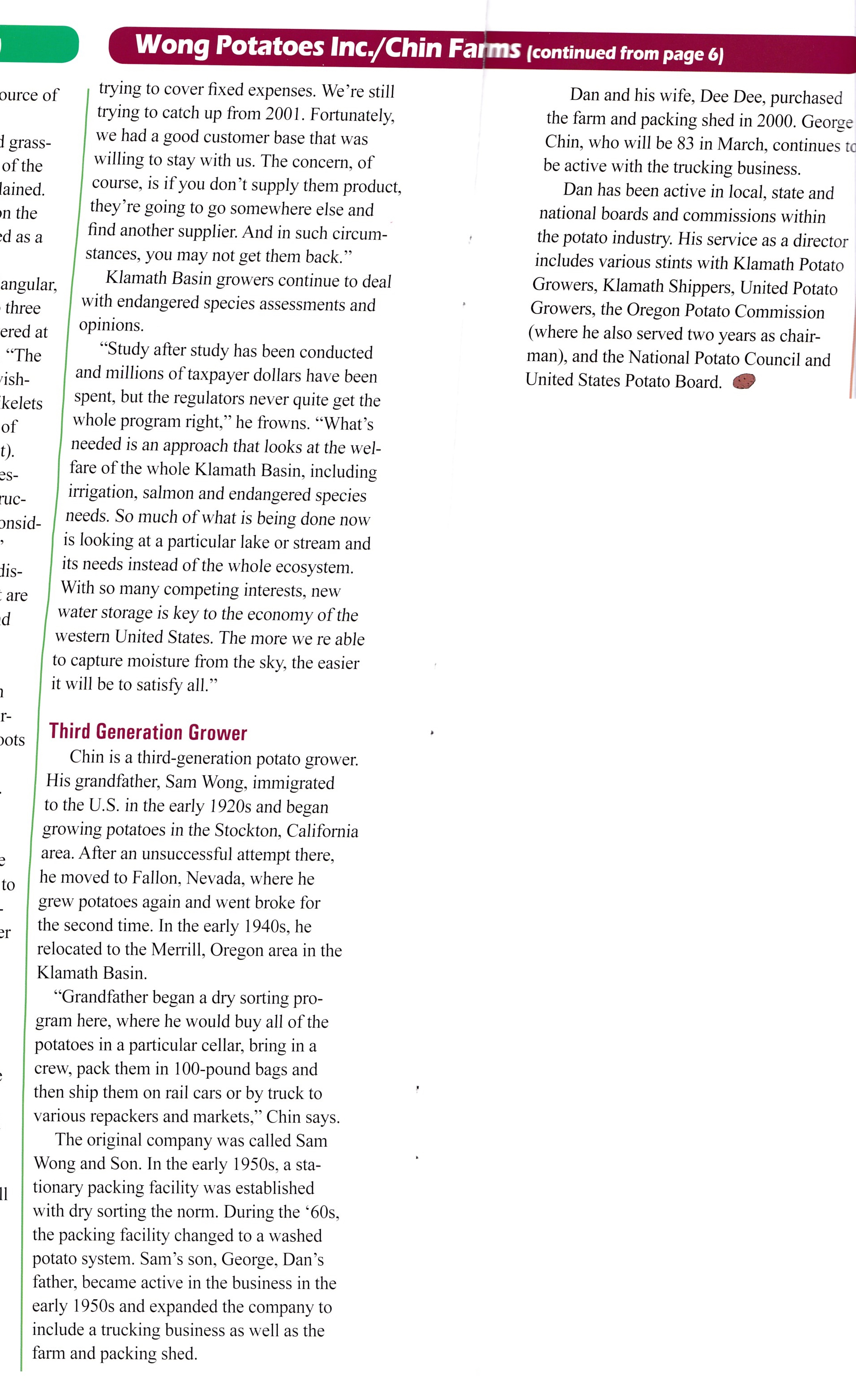 In February 2008 we had Dan Chin and his daughter on the cover of Potato Country Magazine.