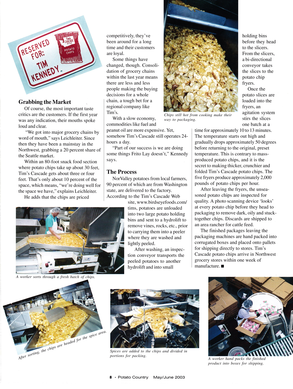 On May 1st of 2003 George W. Bush declared that ” major combat operations in Iraq have ended ” in what became known as his Mission Accomplished speech, Finding Nemo is released in theaters, and Potato Country had Tim’s Cascade Potato Chips on the cover.