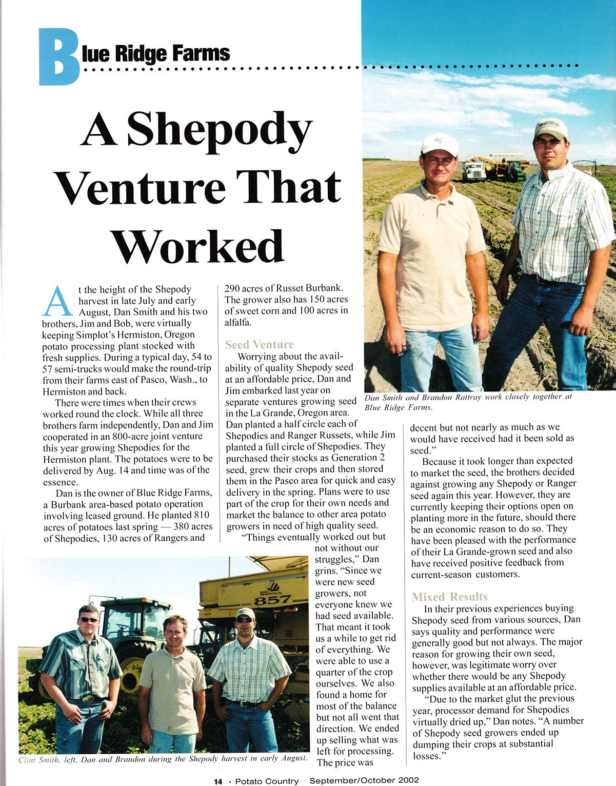 In September of 2002, Serena Williams beats her sister Venus at the 122nd USA Women’s Open. The first public version of Mozilla Firefox is released. And on the cover of Potato Country we had Dan Smith, the owner of Blue Ridge Farms.
