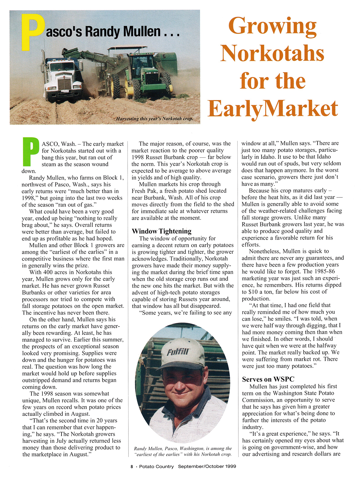 September/October 1999 October 3, 2016 October of 1999 was the last flight of the U.S. aircraft Lockheed SR-71 “Blackbird.” That same month, Randy Mullen was on the cover of Potato Country, talking about his “earliest of earlies” Norkotahs.