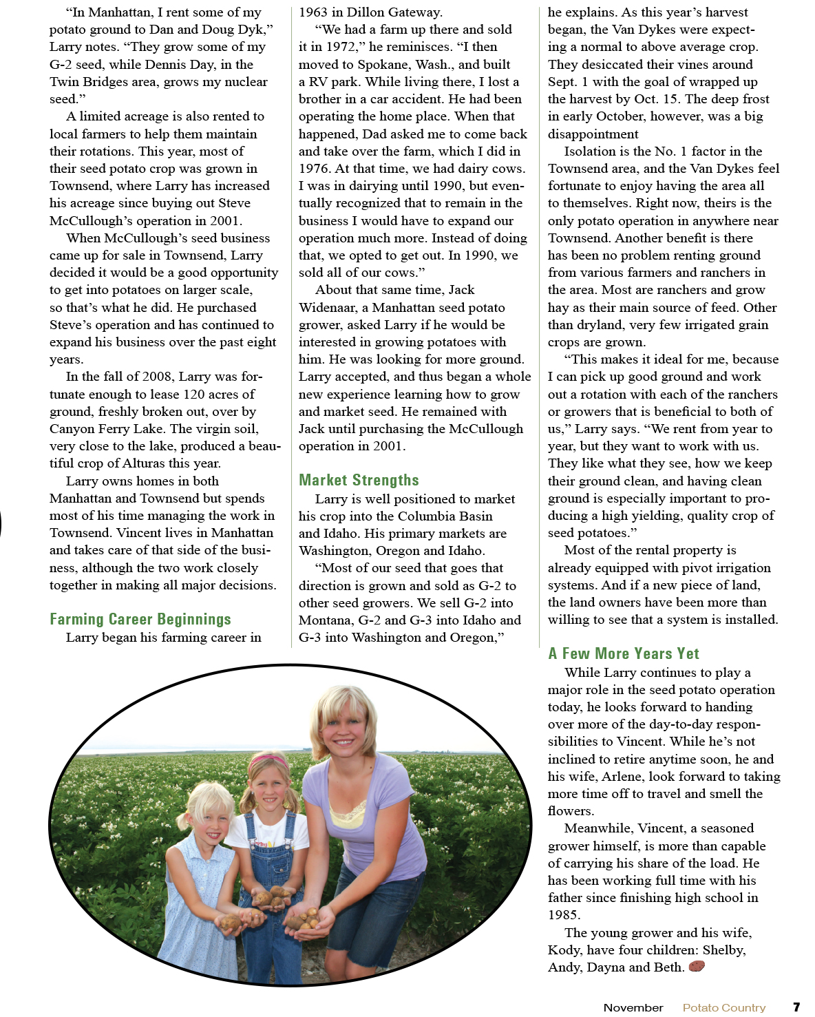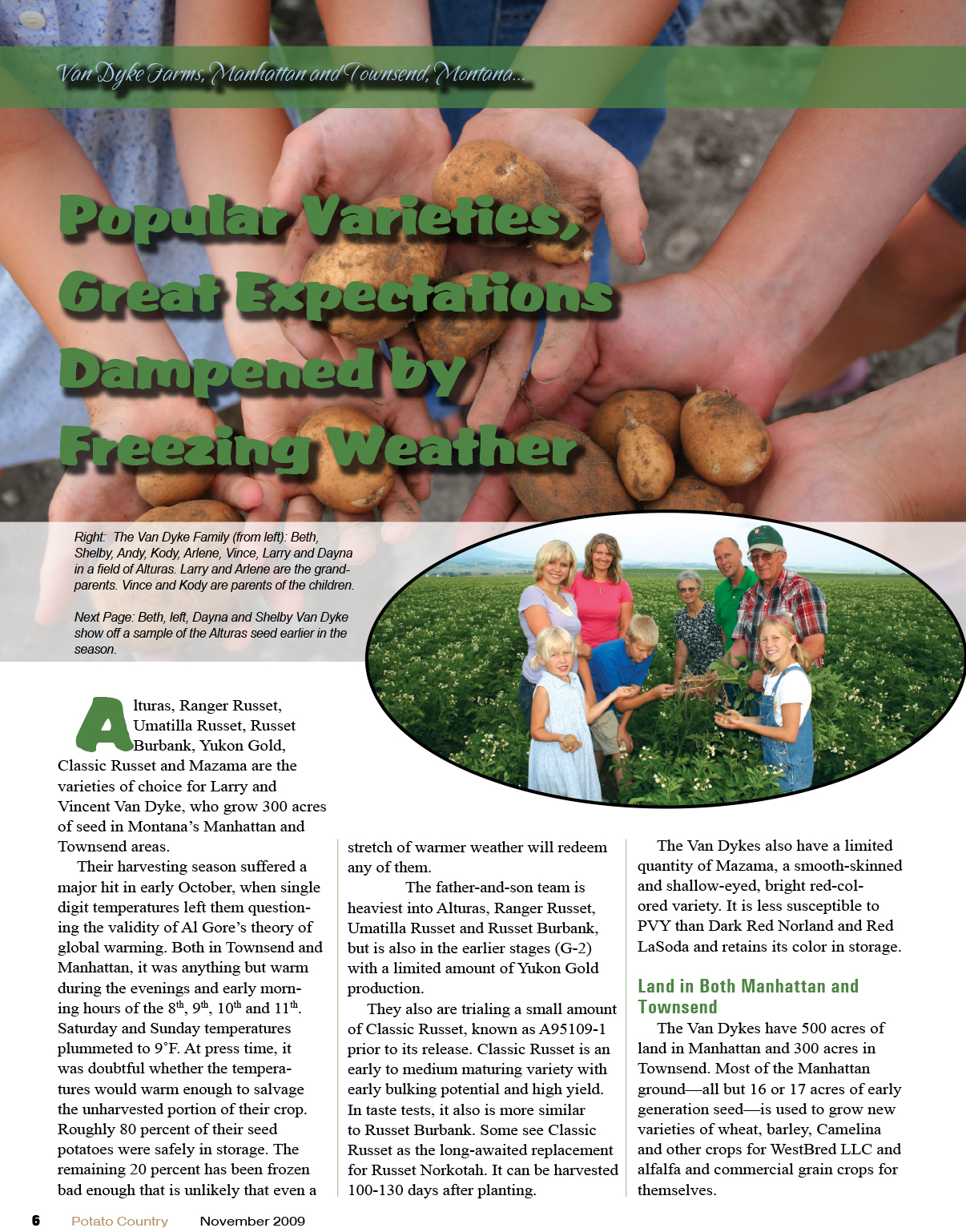 Meanwhile on the cover of Potato Country, we had the Van Dyke family. Growing in the Townsend and Manhattan areas of Montana, they grew several different varieties of potato seed.
