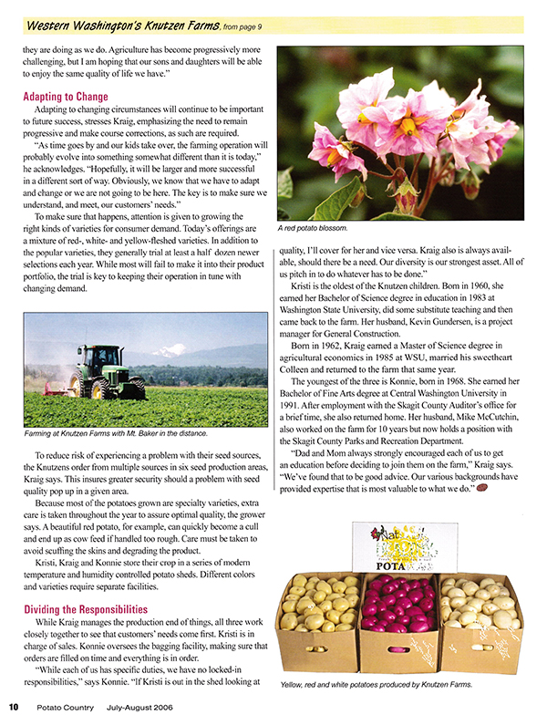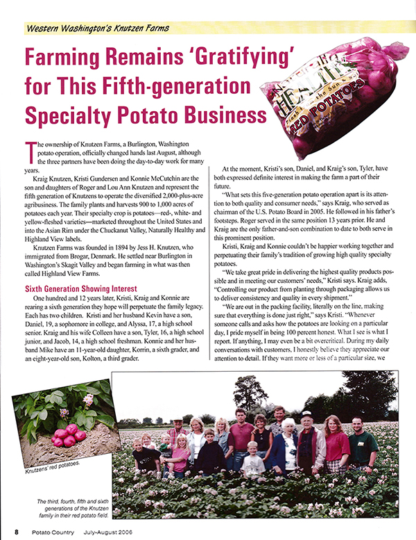 In the July/August 2006 issue, we had Kraig Knutzen, Kristi Gundersen, and Konnie McCutchin on the cover. They are the fifth generation to run Knutzen Farms.