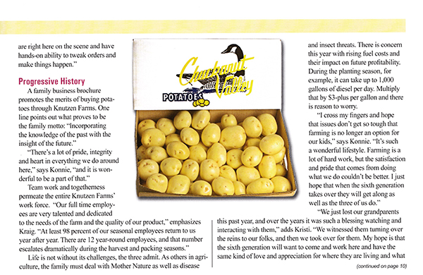 Started in 1894 by Jess H. Knutzen this farm has remained in the family’s hands for over one hundred years and counting. “What sets this potato operation apart is its attention to both quality and consumer needs,” says Kraig.