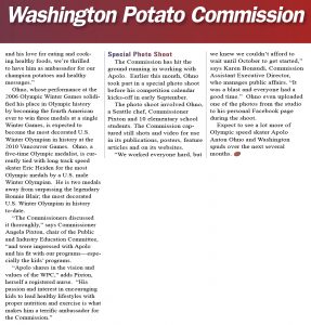 In 2009, the Washington Potato Commission partnered with Ohno to communicate the nutritional value of potatoes.