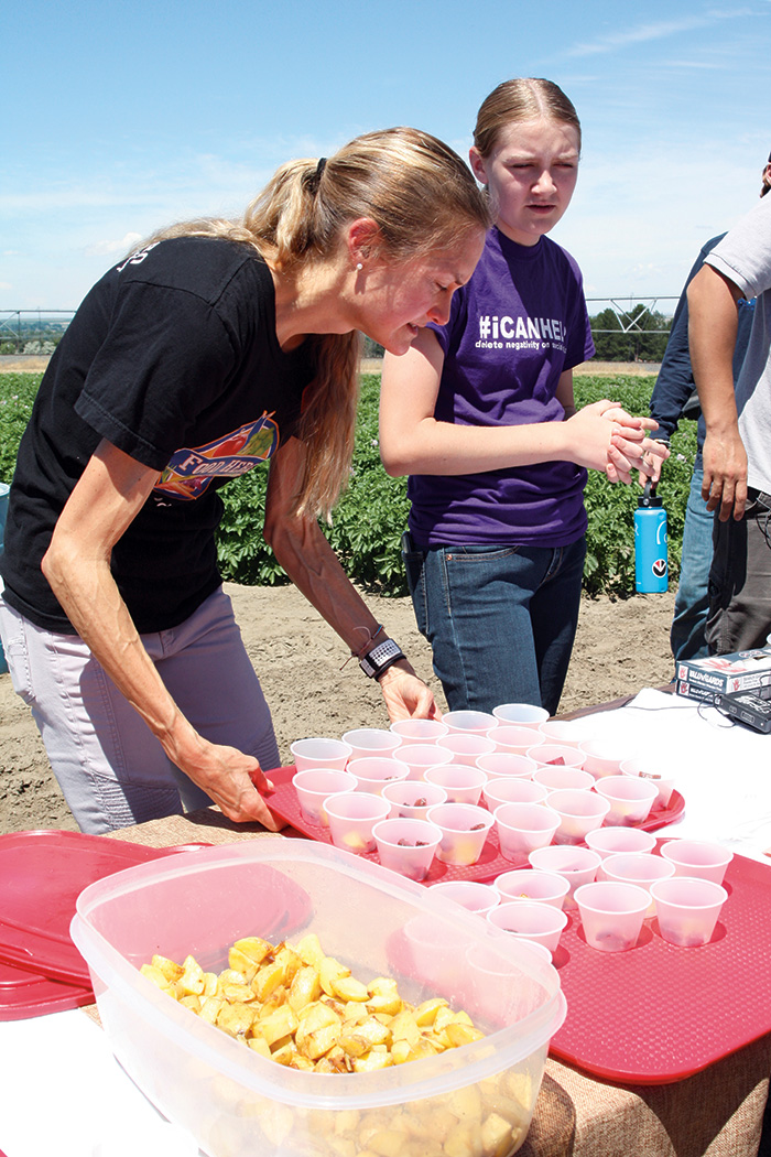 OSU’s Angie Treadwell passes out samples of roasted potatoes that she promotes at school lunch programs in the Hermiston area.