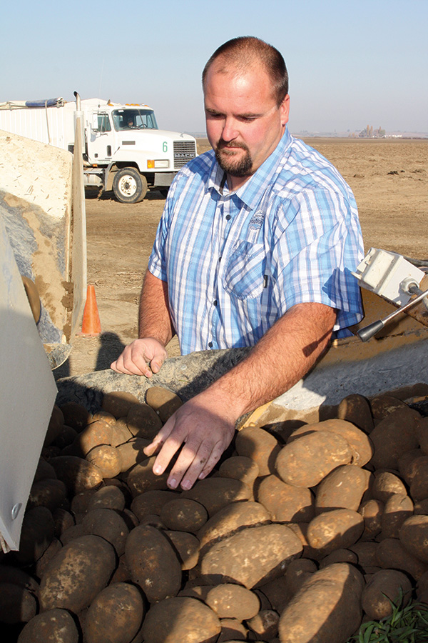 Morris says he is still learning the nuances of growing baby potatoes. Schneider Farms’ Bintje potatoes are roasted and frozen through the specialty potato program the farm helped develop with Simplot in 2007. Since that time, the farm doubled the total yield and increased the usable size profile from 60 to 90 percent by changing the irrigation regime, refining the vine kill method and decreasing row spacing from 34 inches to 22 inches to improve uniformity. Growing baby potatoes is all about plants per acre and tuber set, Morris says. Sampling is intensive at the end of the season to achieve the desired size profile of 28 to 41 millimeters.