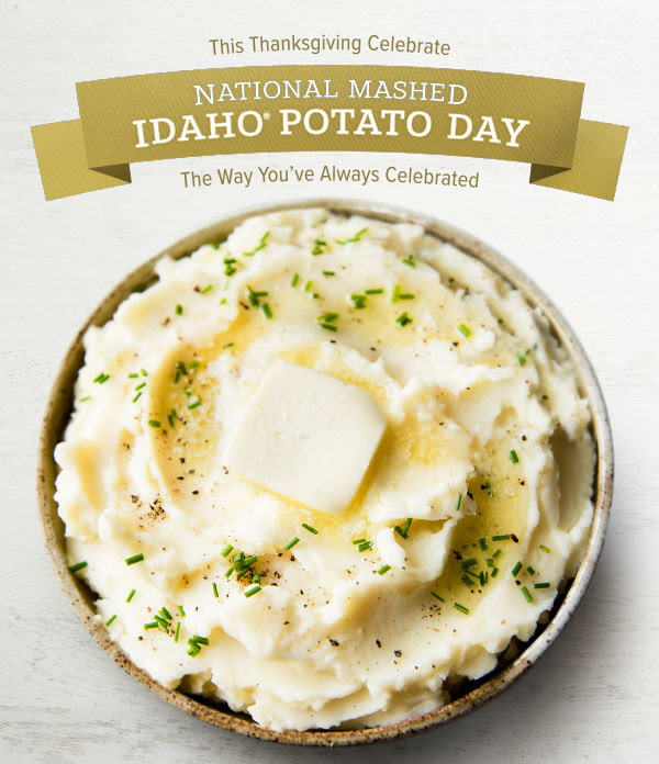America’s favorite way to eat Idaho Potatoes has always been mashed, and there are more potatoes consumed on Thanksgiving than any other day. Thanks to a petition to the National Day Archives by the Idaho Potato Commission, America officially celebrates National Mashed Idaho Potato Day every Thanksgiving.