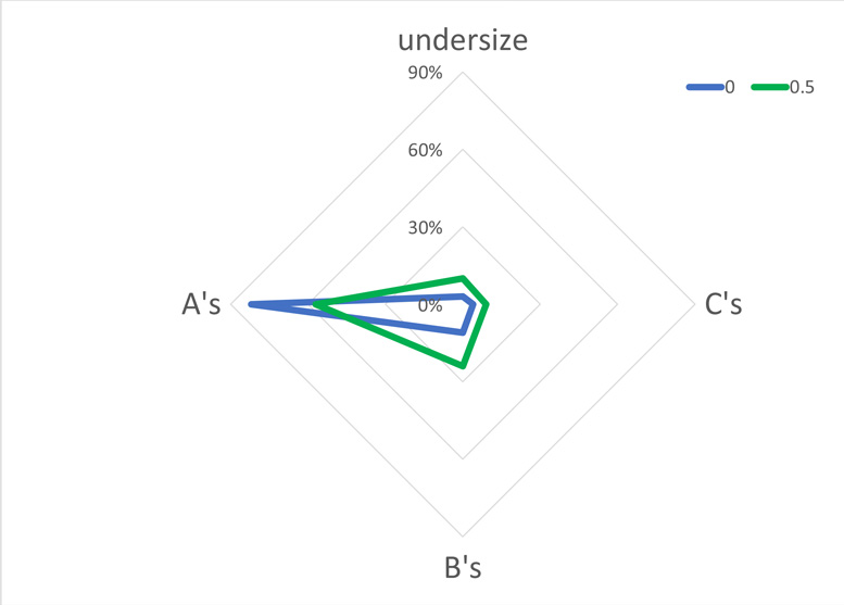 Potato yield and tuber size distribution are both strongly impacted by environmental conditions and management practices. Size distribution is becoming an increasingly important factor in economic returns as all market sectors incentivize growers to produce tubers in the optimum size range. Nowhere is this more important than in the specialty potato market, where the returns vary greatly based on size class. For example, market prices for tubers in the “C” size class were recently about double compared to those in the “A” class.