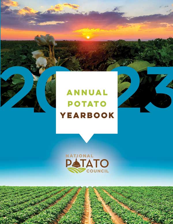 The 2023 edition of the Annual Potato Yearbook is now available, highlighting progress on NPC’s national legislative, regulatory, and marketing priorities. The Yearbook also features updated U.S. and world potato production and consumption stats, grower and industry contact information, position statements, and program overviews.