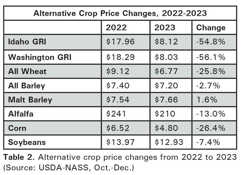Alternative Crop Prices