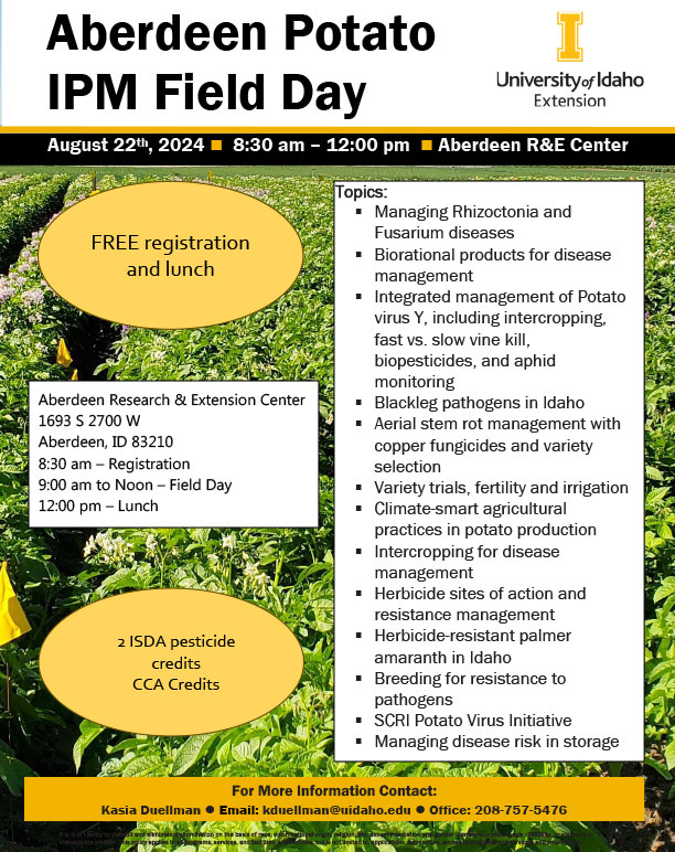 University of Idaho Aberdeen Extension is conducting two events on August 22 that combined offer 5+ hours of education. A workshop follows their traditional field day.